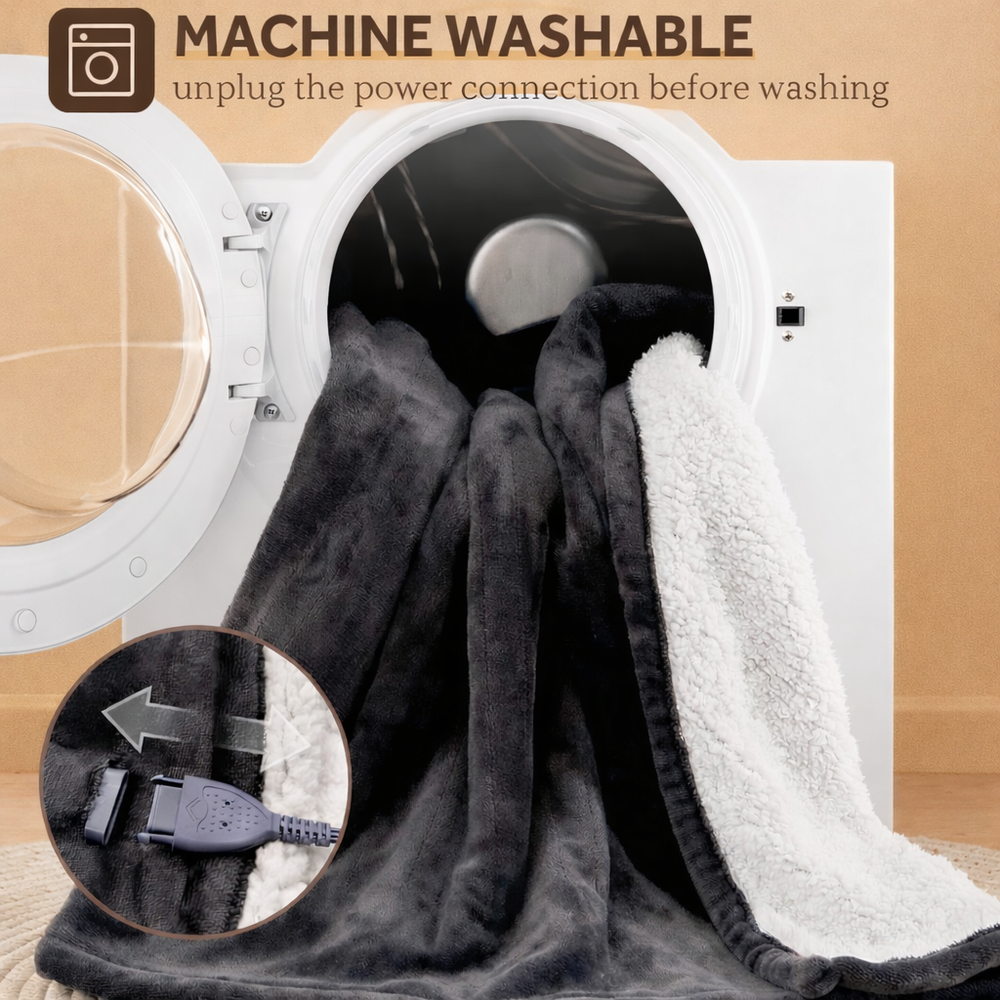 Unplug the power cord and detach it from the blanket before washing. Use cold water on a gentle cycle and mild detergent. Air dry or tumble dry on low heat only.